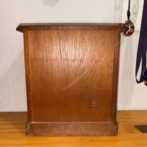 Elegant wooden storage cabinet with a drawer, perfect for organizing your home and jewelry. Features a rich brown finish and intricate metal handles for a classic look.