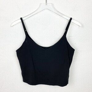 Align cropped cami tank top in black by lululemon. Nulu material. Adjustable straps. Built in shelf bra with light support for A~B cups. Pockets for optional padding (not included). Very light mark on back, just looks like a bit of deodorant, will likely lift with a wash.