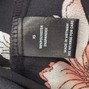 not sure on brand, tags are cut. but it was bought from stitch fix. This elegant black blouse features an asymmetrical design with ruffled accents, offering a chic and modern look. The sleeveless style makes it perfect for warm weather, while the black and white color scheme adds a touch of sophistication. Ideal for both casual outings and more formal occasions.