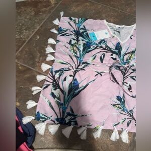 NWT 2T Pink Tropical Print Cover-Up with Tassels- fits 1-2 years with drawstring