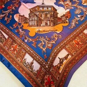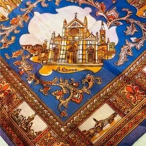 Scarf of Florence, Italy with Vibrant Blue and Orange Hues NWOT