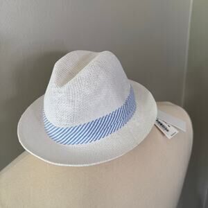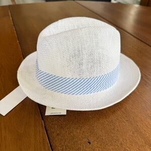 Janie and Jack Straw Fedora Hat White Blue Ribbon 6 12 Mos 4th of July Coastal