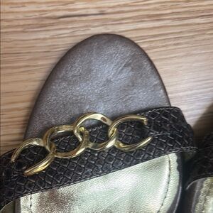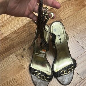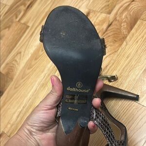 Dollhouse Brown and Gold Heels with Ankle Strap