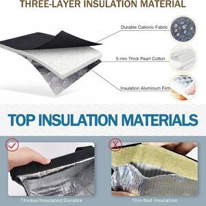 [Thermal Material] The outer part of the lunch bag is made of durable cationic fabric, and the inner part is made of aluminum foil + 5mm pearl cotton, which is an insulation material, 100% non-toxic, no BPA. The heat insulation lining make this thermal lunch bag can keep food and beverages cold/hot/fresh about 6 hours.