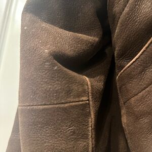 Vintage Adventure Bound by Wilson’s Leather. Elevate your style with this classic brown leather jacket. Perfect for any occasion, this jacket offers both comfort and sophistication. Some spots of wear on leather but adds character.