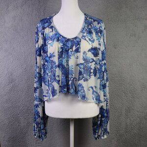 Free People Blouse Womens S Blue Floral Up For Anything Western Top Cropped Boho