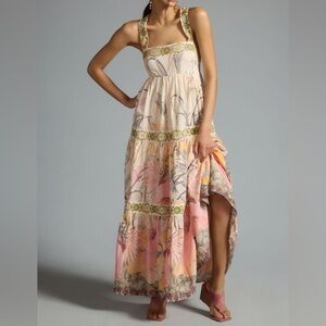 Farm Rio Bright Yard Floral Puff Sleeve Ruffled Tiered Mini Dress Size S