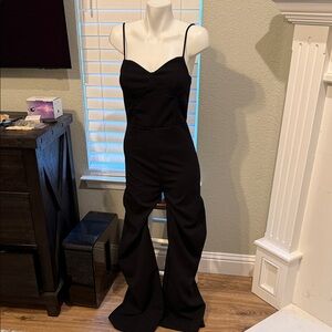 Old navy jumpsuit, maroon color, faux wrap, elastic waist, pockets, straight/skinnier leg, underarm to underarm 20.5”, waist 16”, inseam 27”, leg opening 6.25”