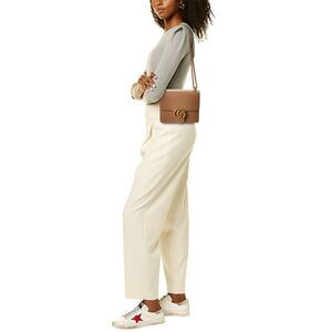 About the brand: Eclectic and coveted. Italian luxury redefined. Made in Italy GG Logo Leather Shoulder Bag in brown leather and light fine gold hardware with interlocking G logo accent and chain strap Interior design details: canvas lining, wall pocket Measures 7.5in wide x 6.5in high x 2.5in deep Top handles drop 13in Shoulder strap drops 23in Fold-over flap with pushlock closure Please note: All measurements were taken by hand and are approximate; slight variations may occur. Our products are 100% genuine. In some cases we purchase merchandise from trusted independent suppliers and not directly from the brand owner. In all cases we stand by the authenticity of every product sold on our site.