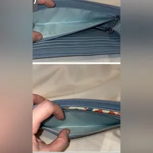 CALLOUTS:Small spot on fabric as seen in pictures. Barely noticeable. Overall, wallet is in great condition! Look at pictures carefully as they are considered part of the description. All sales are final, no returns, no refunds and no cancellations.
