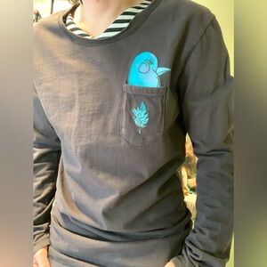 Elegant black top with intricate embroidery, and sultry shoulder slits straight out of the early 2000's by Jennifer Lopez' clothing line, JLO