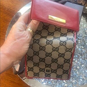 This Gucci wallet showcases a striking combination of red leather and black GG supreme canvas, embodying the brand's iconic style. The luxurious accessory is adorned with gold-tone hardware, making it a standout piece for any occasion. Crafted with precision, it offers both elegance and functionality. Comes with box paper work and ribbon for a perfect gift