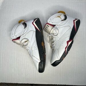 Air Jordan Retro 7 black and white cardinal 2006 men’s sneakers. Pre-owned and is in very good condition. Please see all pics, a little scratch on toe and a spot on tongue (all pictured)