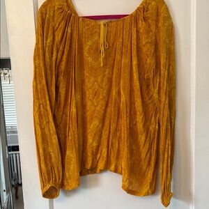 Elevate your wardrobe with this elegant golden paisley top. Perfect for any occasion, this top offers both style and comfort.