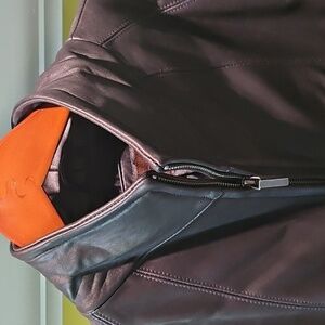 the photos don't do this jacket justice. Black butter leather jacket, no marks, scuffs in excellent condition. see photos for measurements