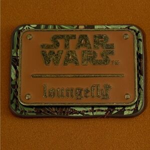 This brand new Loungefly wallet showcases the charming Ewok character in warm brown and tan hues. Made from faux leather, it features a cute, cartoonish design with expressive eyes and decorative stitching, perfect for any fan.
