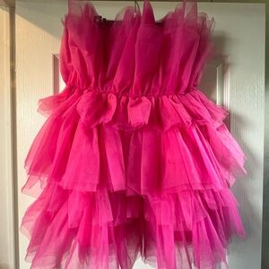 Stand out in this vibrant pink tiered tulle dress. Perfect for parties and special occasions. NEW with tags! Zips up the side. Size Large.