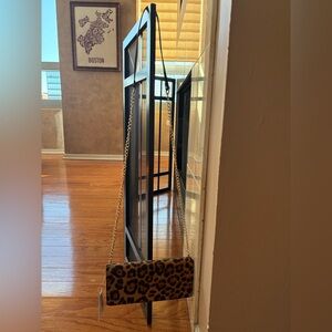 Versatile strap length: at full length can be worn crossbody but chain can be wrapped around interior of fold over top to create shorter strap look.