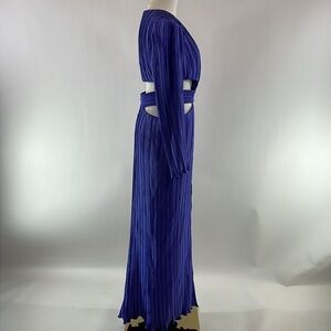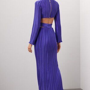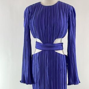 Turn heads in this long sleeve pleated gown by AIIFOS, where sharp waist cutouts meet a bold banded waistline. This one looks amazing on!