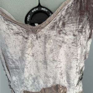 ANTHROPOLOGIE Let Me Be DARK TAN Velvet Lace Beads Lace Slip Dress SIZE SMALL