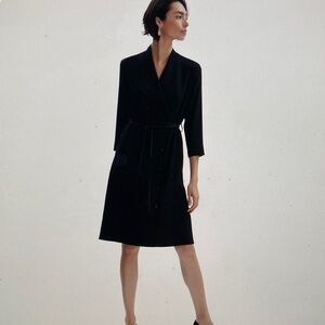 Ribbed wool that hugs the torso and has a slight flare in the skirt. Most comfortable cocktail dress you will ever wear! Wear so many different ways.