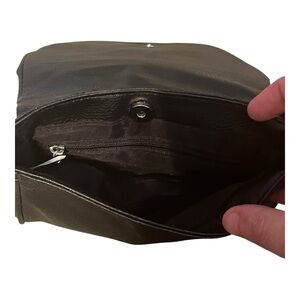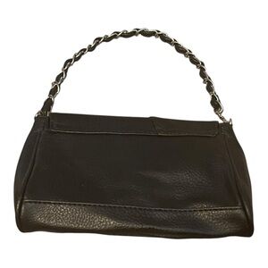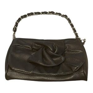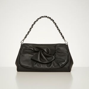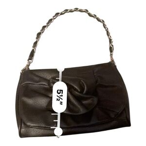 Black Pebbled Leather Mini Shoulder Bag Knot Detail Chain Strap Y2K Clutch (A)