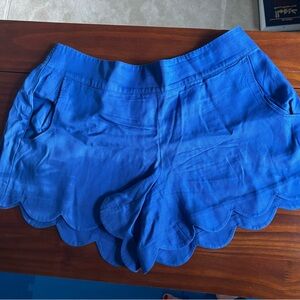 Stylish blue shorts with scalloped edge detail. Pockets. Elasticized waist. Ideal for summer. Size M.