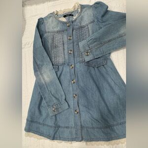This elegant blue dress features a sophisticated bib collar and cuffed long sleeves, perfect for a casual outing. The dress combines comfort and style, making it a versatile addition to any wardrobe.