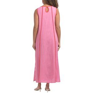 WHITE CLOSET Linen Blend Sleeveless Maxi Dress With Contrast Trim