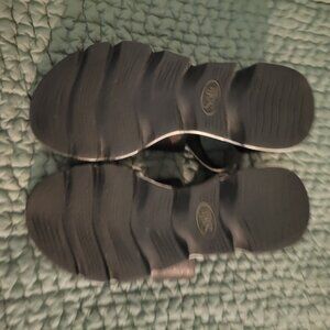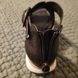 Comfortable Sofft black leather sandals with white bottoms. Easy to get on with back zipper. Very good condition; worn a few times. Size 6.5