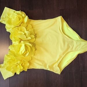 NWOT Gorgeous Yellow top or Bathing Suit Flower Chest Embellished