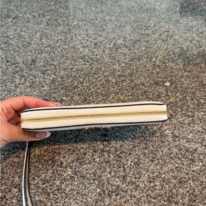 This sleek Michael Kors wallet, crafted in a chic white saffiano leather, exudes elegance with its minimalist design and gold-tone hardware. Its structured form and professional finish make it a sophisticated accessory for any occasion. Perfect for organizing essentials, it combines style and functionality seamlessly.