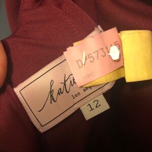 Thick strapped, slightly fitted, floor length dress. Deep wine red. Scoop neck, fairly modest cut. Zip up. Never altered/shortened (I totally goofed on that!), worn once as a bridesmaid, dry cleaned after the fact. One of those dresses where I could’ve actually seen myself wearing again, for the right event, but it never arose. Would be great for bridal party or wedding guest, or other formal event, depending on dress code. Katie May for BHLDN, Anthropologie.