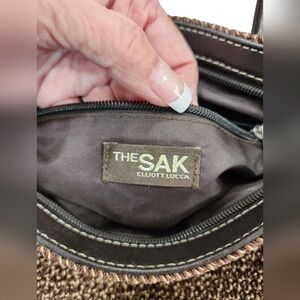 The Sak Elliott Lucca Chocolate Brown Crochet/Woven Satchel Bag EUC