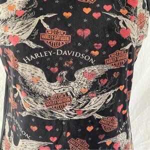 Pink and orange hearts with Harley-Davidson logo printed across the tank top