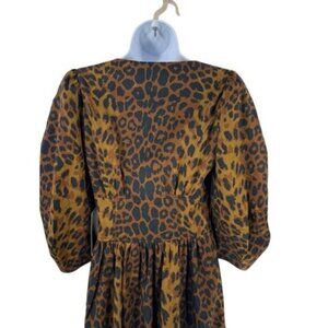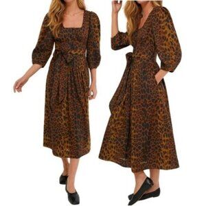 Tuckernuck NEW Leopard Graciela Puff Sleeve Square Neck Midi Dress Size 8