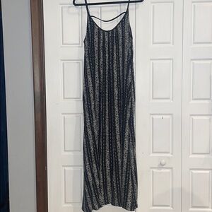 This jumpsuit showcases a sophisticated vertical stripe pattern in blue and cream, offering a sleek and elongating silhouette. The sleeveless design and high neckline add a touch of elegance, while the fitted style with tapered legs ensures a flattering fit. Perfect for making a statement, this one-piece ensemble is both stylish and versatile.