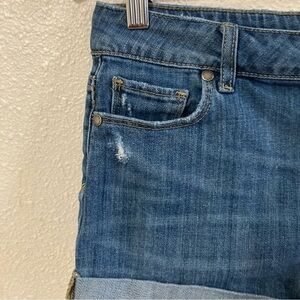 PAIGE Anthropologie Women’s Jean Shorts Sz 27 Cuffed Blue Distressed 5 Pockets