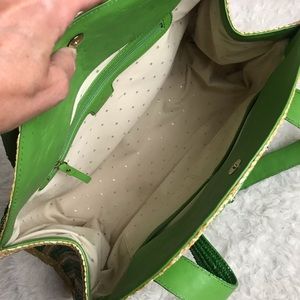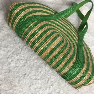 Kate Spade Lawn Party Reign Large Straw Half Moon Tote Green Beach Pool Vacation