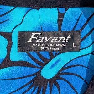 NWT Favant Rayon Hawaiian Hibiscus Button Up Shirt Never Worn Black Blu Sz L