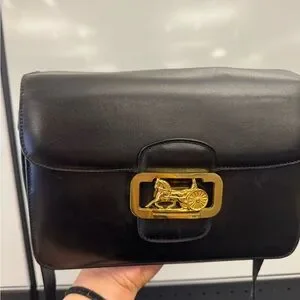 Celine Black and Gold Crossbody Bag with Ornate Clasp