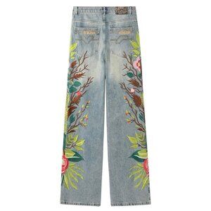 VeryRare Sakura Demi Jeans Size M Blue Pants Denim Embroidered Cherry Blossom
