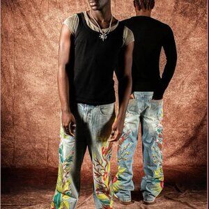 Design by Raf Reyes: sakura [denim] entwines the delicate allure of cherry blossoms 🌸 with the ᵥrugged ᵥresilience of denim 👖~ its melody whispers of fleeting beauty🪞, like petals carried by the wind 🌀, while the ᵥrhythm echoes the sturdy strength of woven fabric — crafting a harmonious ode to the delicate balance between transience and durability🧵 💯.