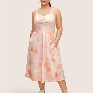 Bloom Chic Pink Tie-Dye Midi Dress
