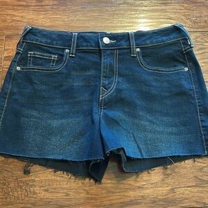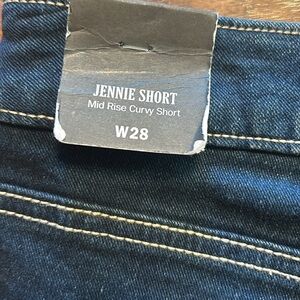 The Jennie Mid Rise Raw Hem Short is ready for sunny days. Crafted from stretch denim, this pair of shorts feature mid-rise waist, zip fly, belt loops, whiskering, and single needle stitching. Finished with five pocket construction, back horseshoe detailing, and a raw-cut hem. NWT size 28