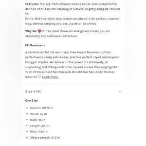 Navy and white FP track suit. Currently on FP website at full price. This color is sold out.