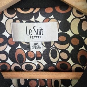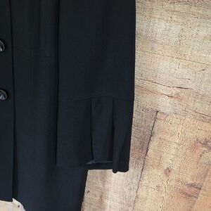 This sophisticated black pea coat with 3/4 sleeves by Le Suit features a timeless design with a traditional collar and a mid-length cut. Crafted from a solid black fabric, it offers a versatile and professional look suitable for both business and casual settings.