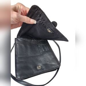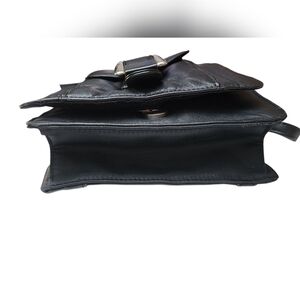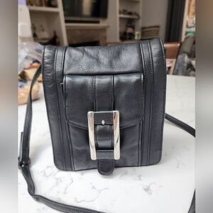 KENNETH COLE NEW YORK Soft Black Leather Silver Buckle Crossbody Bag EUC
