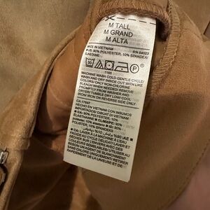 Camel color soft material moto jacket, zipper detail, size medium tall. In great condition.