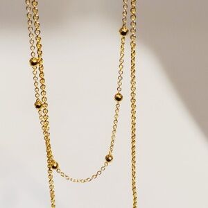 Elegant gold crescent moon layered necklace perfect for any occasion. Add a touch of sophistication to your outfit.